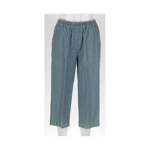 7oz Stretch Denim. 84% Cotton 15% Polyester 1% Spandex Machine Wash Cold with Similar Colors, Only Non Chlorine Bleach, Tumble Dry Low, Warm Iron If Needed. Imported..../ 7oz Stretch Denim Pull On Capri / Stretch Jean